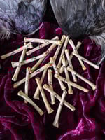 Connect with the wisdom of the old ways with this 24-piece Elder Futhark rune set, meticulously crafted from real coyote foot bone metatarsals. Each rune symbol is carefully etched by hand with a razor-tip pyrography pen, preserving the natural beauty and mystique of the bone while making each piece a unique tool for divination, meditation, or spellwork.