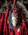 Red Quartz Crystallized Mink Skull Necklace\Pendant on Beaded Ruby Rosary Chain.
